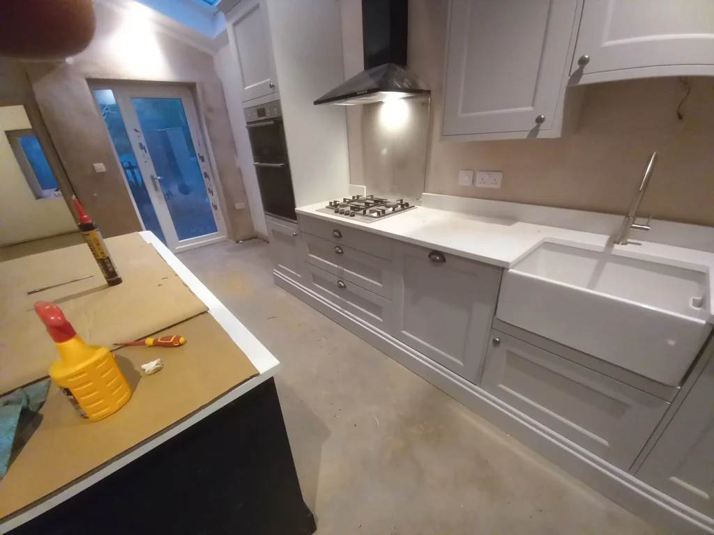 Home PORTFOLIO Chris & Ursula – Alsager Chris & Ursula – Alsager Chris & Ursula – Alsager Location: Alsager SERVICES: Open plan refurb + new kitchen Kitchen removal Structural knockthrough Full screed throughout New LVT flooring New kitchen with Island and Quartz worktops New log burner in living room Post Code: ST7 01. PROJECT STORY […]