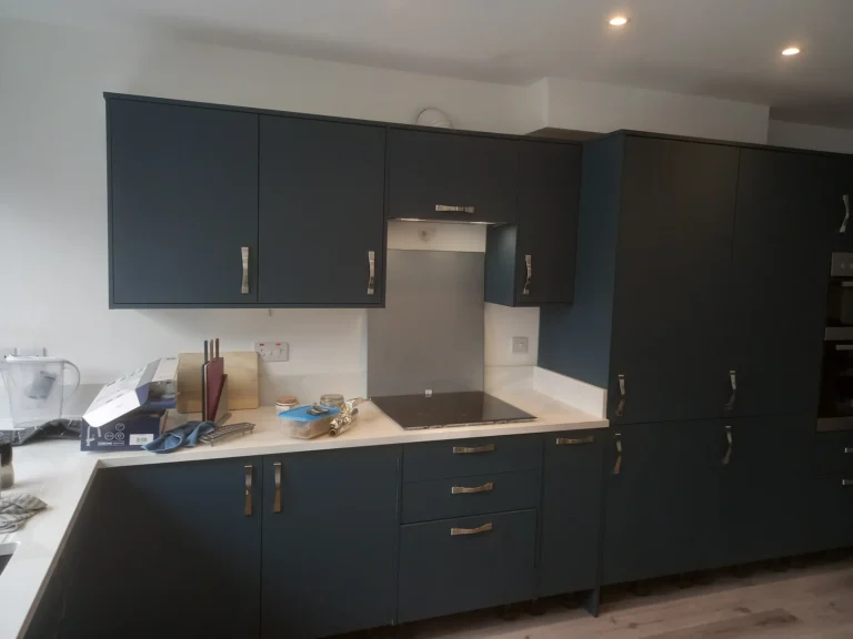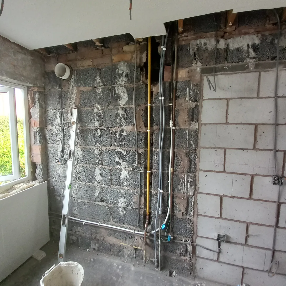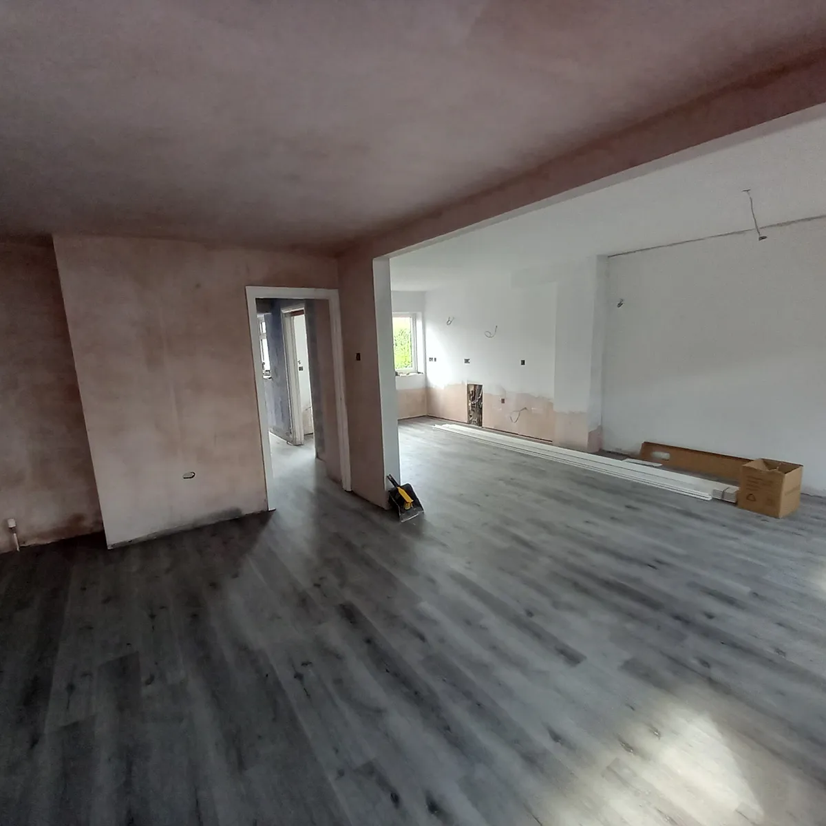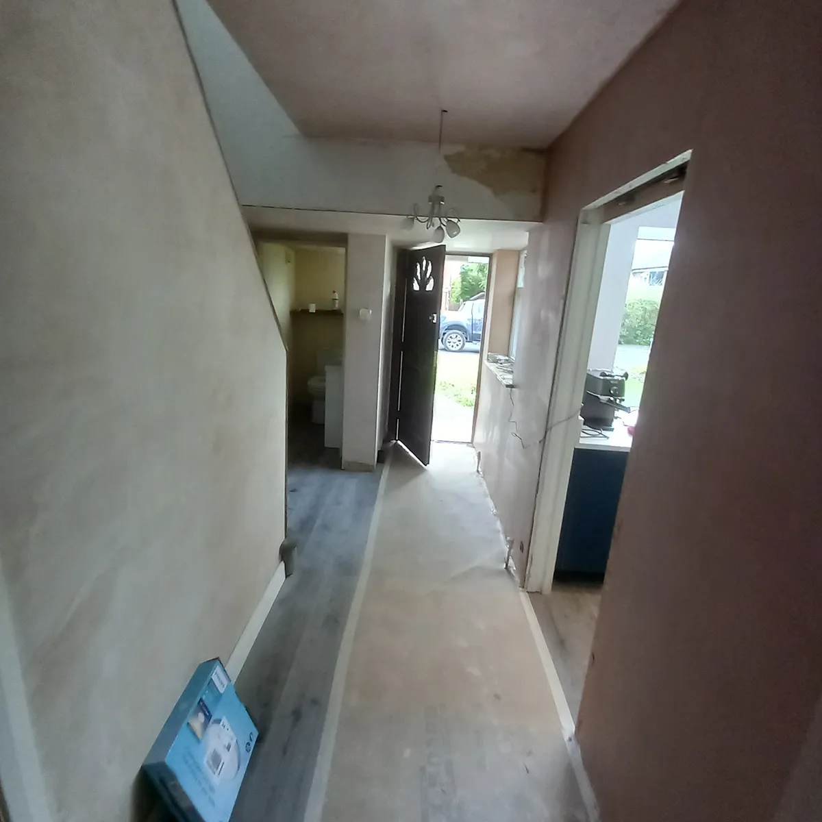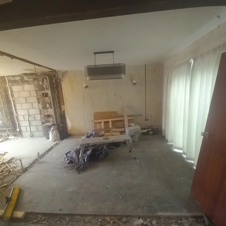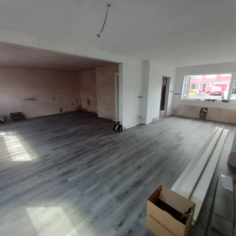We started by removing their old kitchen and completing a structural knockthrough, creating a seamless flow between rooms. The new layout features a stunning kitchen with a central island and Quartz worktops, perfect for cooking and entertaining. To finish the space, we laid a sleek LVT floor and applied a full screed throughout for a flawless finish.