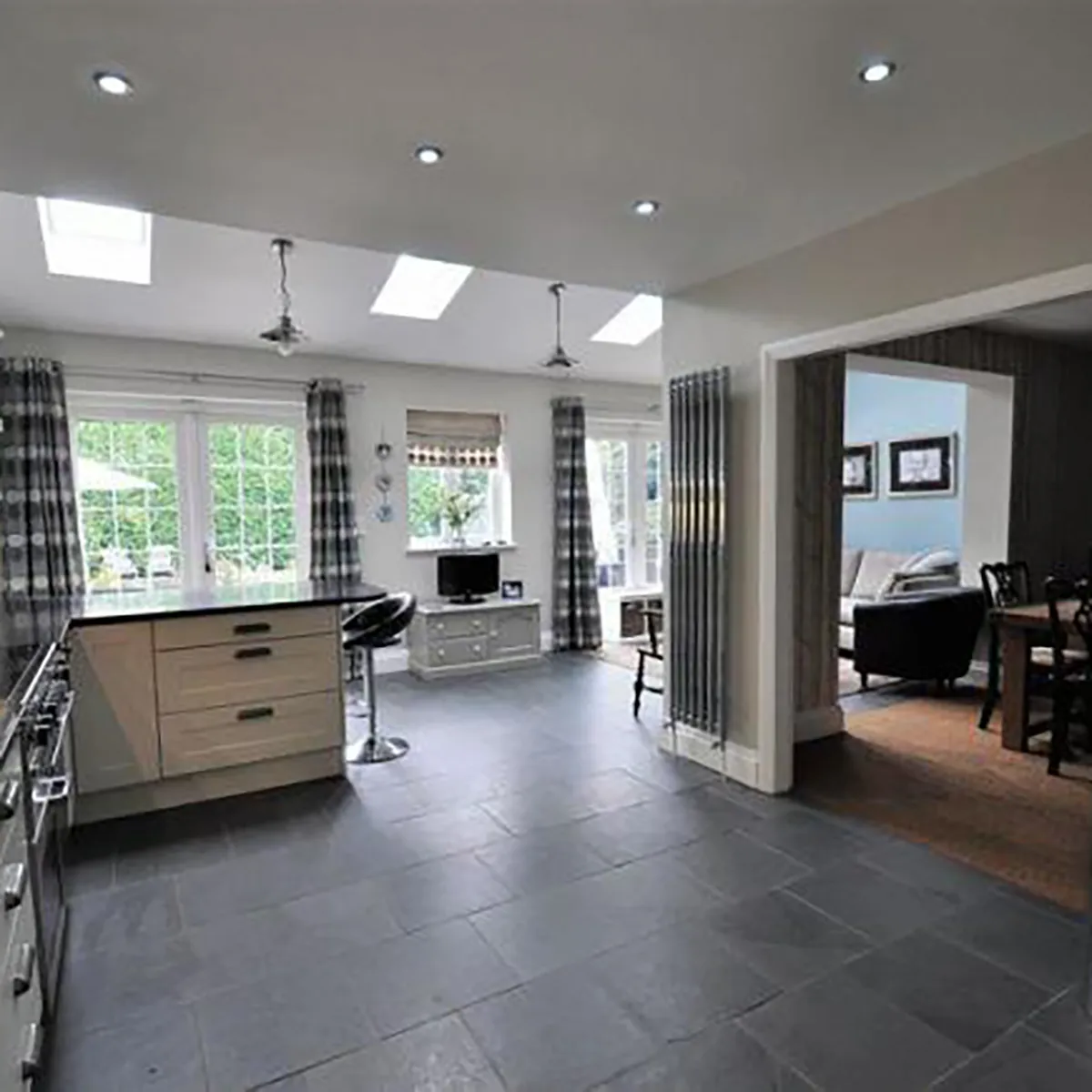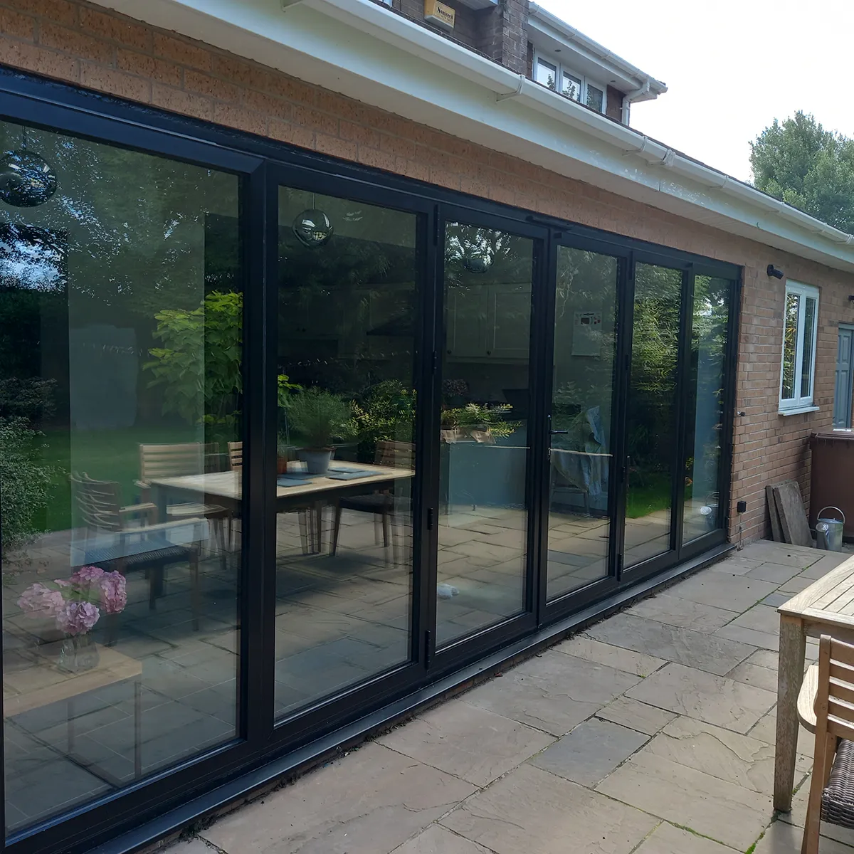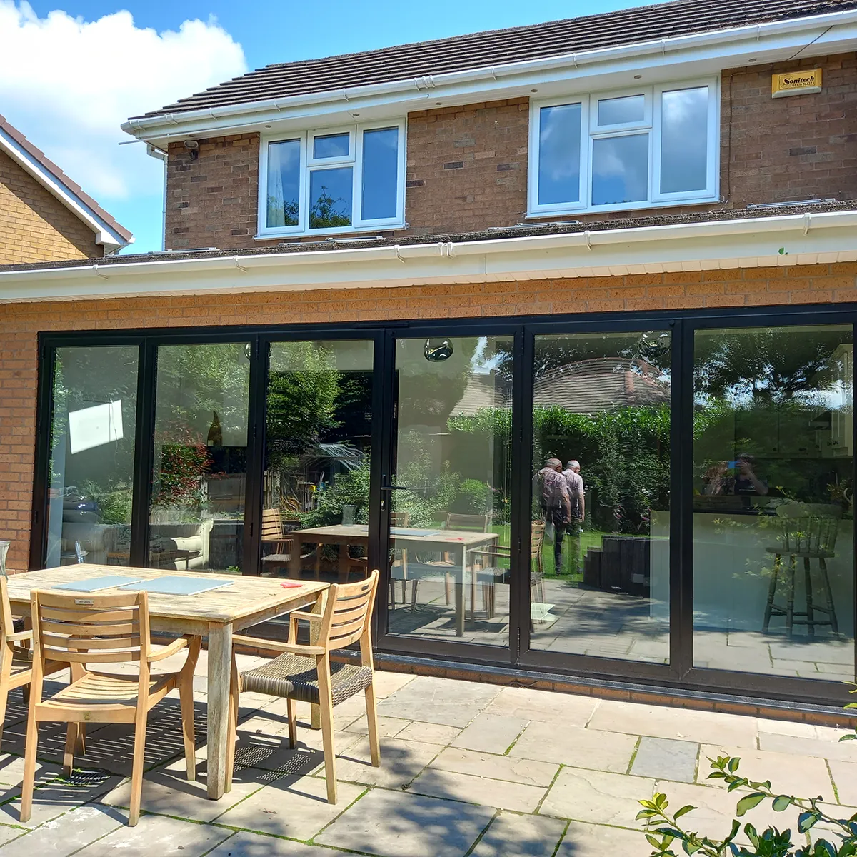 We delivered a design and build project, completing a large structural knockthrough and installing stunning 6-leaf bifolding doors. The result is a seamless connection between their home and garden, filled with natural light.