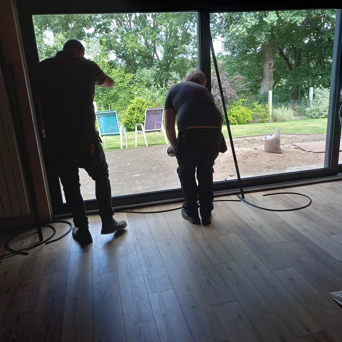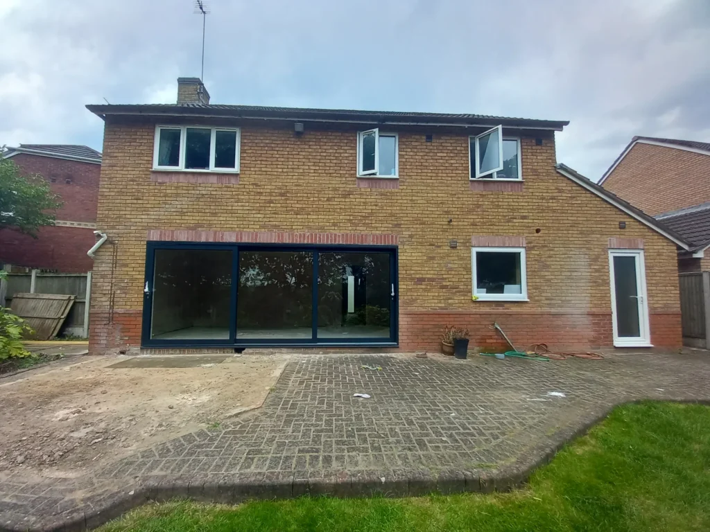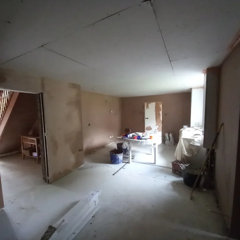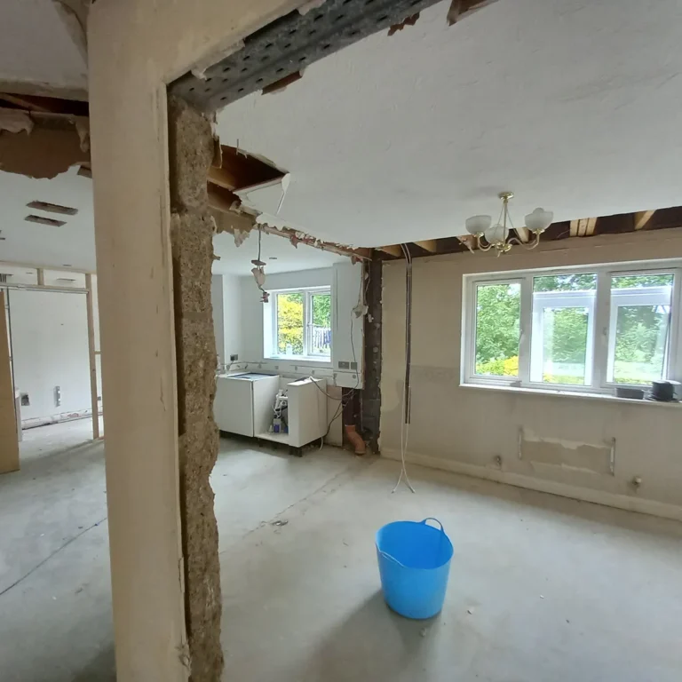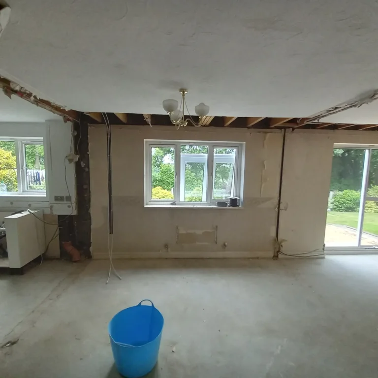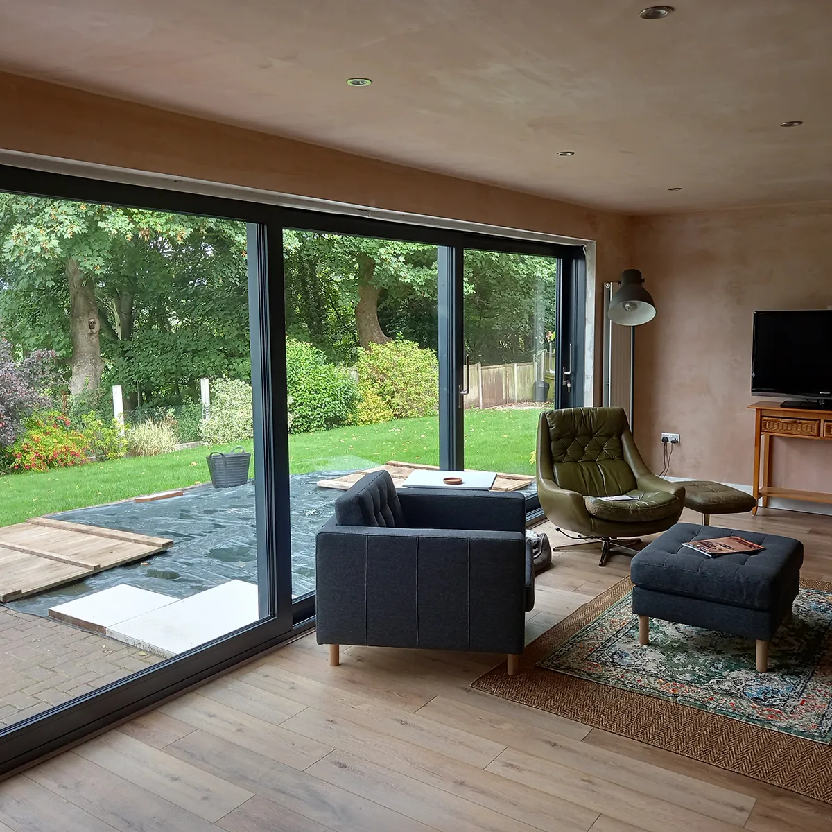 We completed a design and build project that included a structural knockthrough and the installation of sleek aluminium large-leaf sliding doors. The space was finished with floor screeding, reconfigured electrics for the upgraded kitchen, and stylish Karndean flooring throughout.